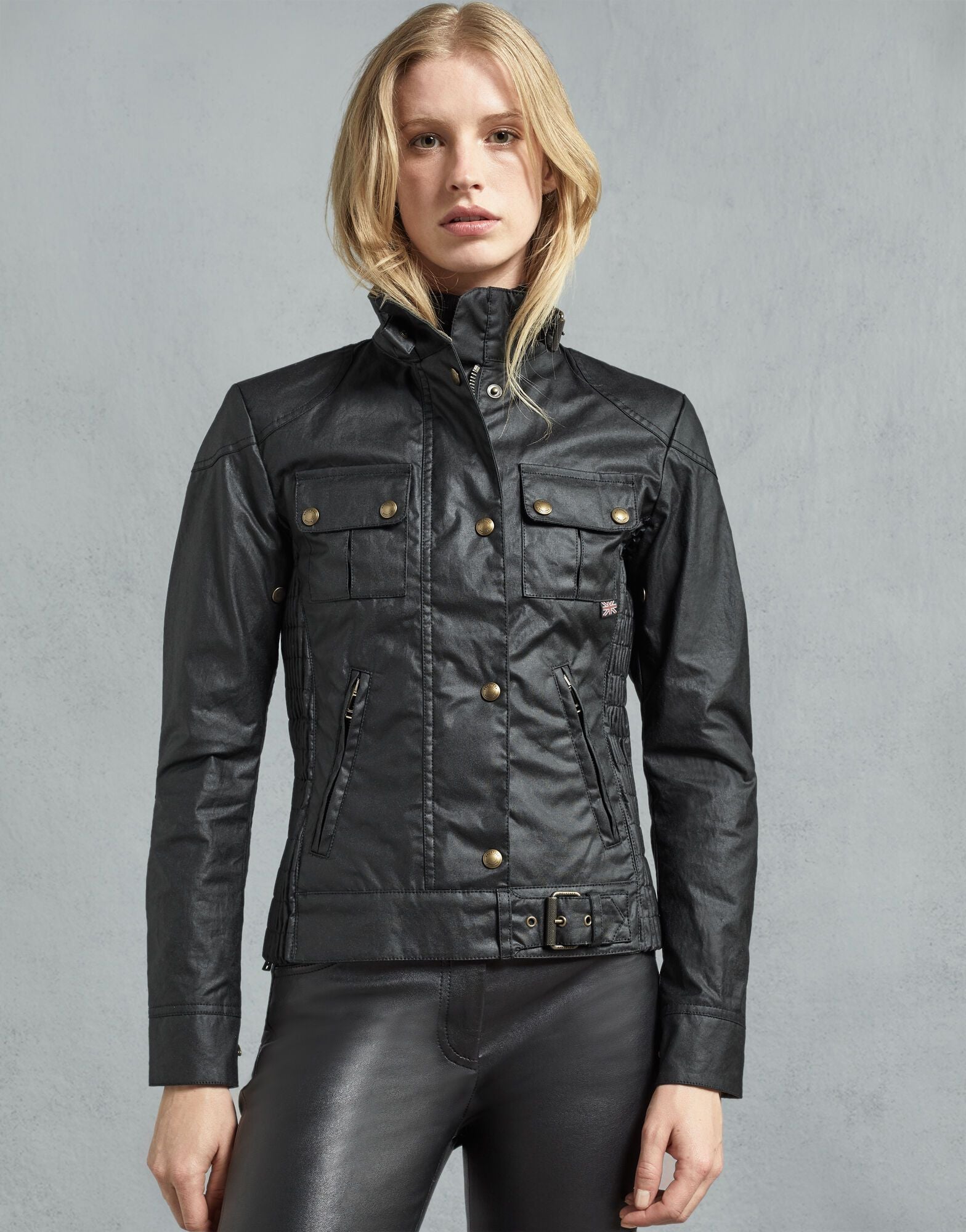 The elasticated side panels and gusseted central zip allow for an adjustable, tailored fit to this classic biker shape, while the buckled collar and waist provide classic detailing, and brushed velvet linings on the collar, cuffs and hem add luxurious touches of comfort.