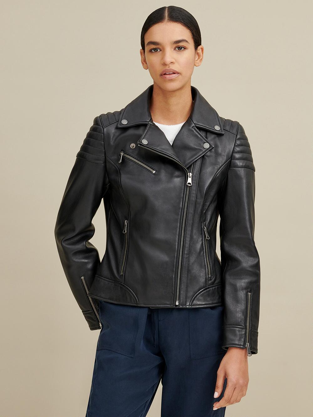 Edgy and fierce, this asymmetrical-zip leather jacket pairs perfectly with a sassy outfit and boosted confidence. Quilted accents and brushed metal hardware deliver extra pizazz. All our Marc New York brand jackets have an ageless attitude and a slim, modern fit.