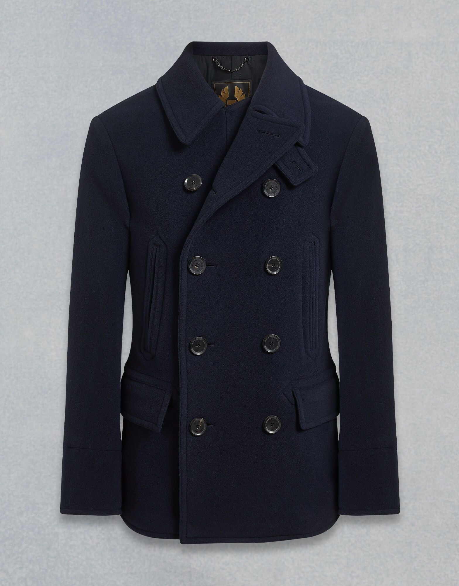 Crafted from a compact virgin wool Melton, the men's Naval Peacoat, features a double-breasted front fastening with notched lapels. The classic style also boasts carefully considered practicality with a detachable throat latch and two welted chest pockets to complement the larger, flap pockets beneath.