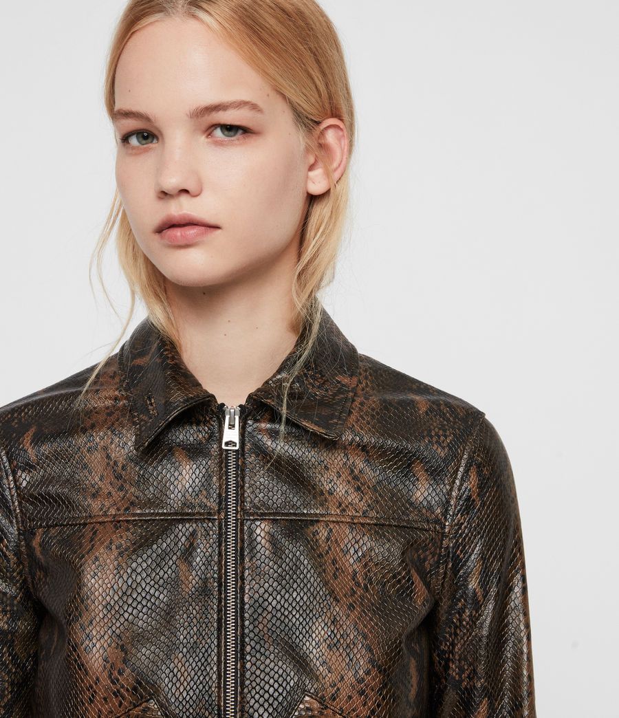 It's so 70s. The Pascao Oba Bomber Jacket is crafted from snake-printed leather and is shaped to a vintage, cropped silhouette.